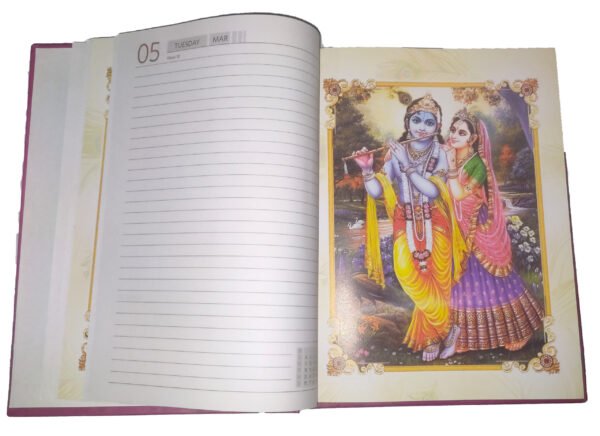 Additional Features Multi color Radha Krihsna photos in side this diary.